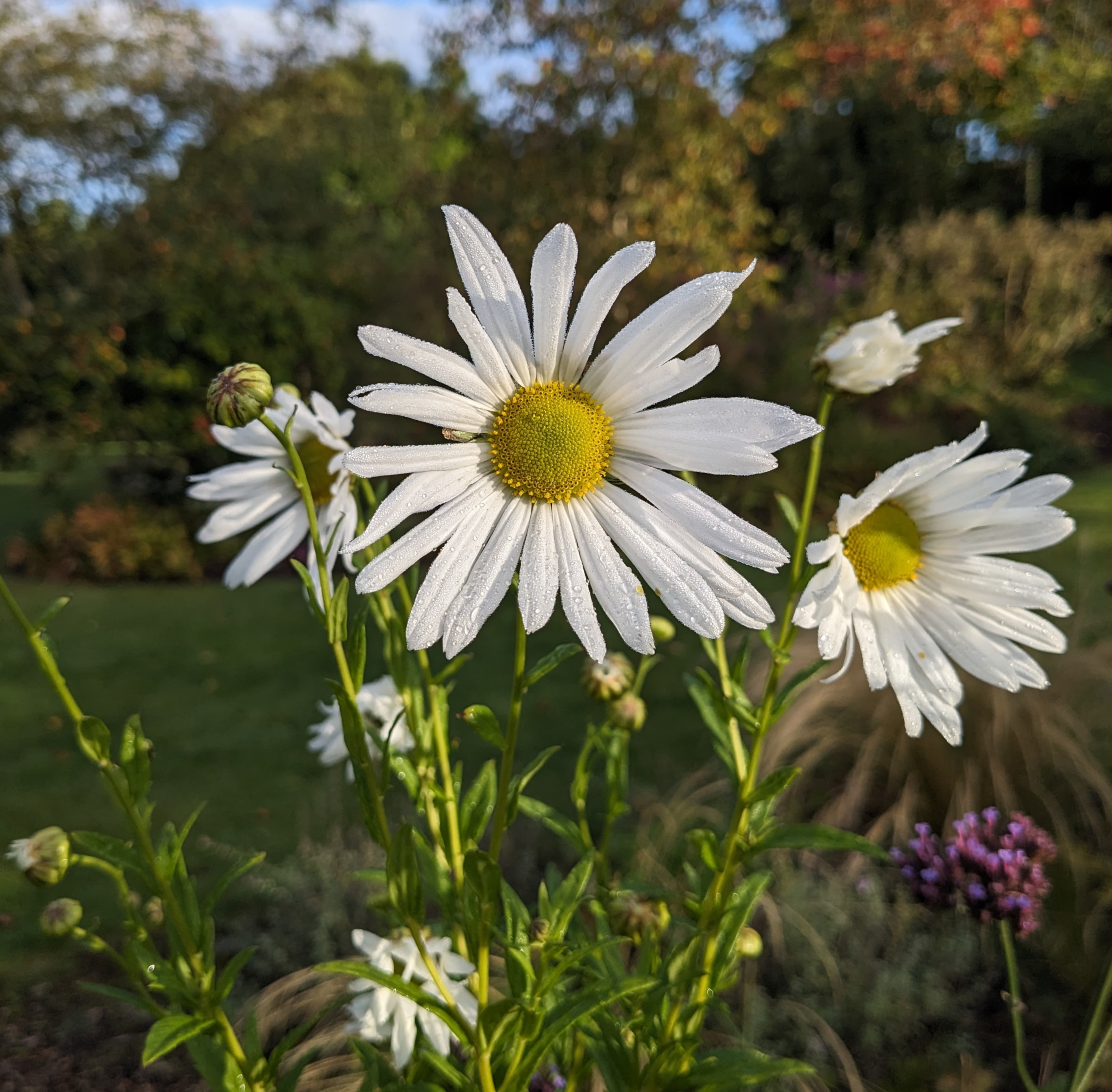 Asters are rightly famed for their autumn show, but they’re not the only plants delighting us in the garden this week. I counted 39 plants in flower, not including berries, fruits and glowing leaves. A select few have waited until October to flower for the first time, like Leucanthemella serotina, below. She spends all summer slowly extending green stems up through the plants around, and then in the week we shut the doors, unfurls the first of those pristine white flowers, glistening with dew, to face the rising sun.