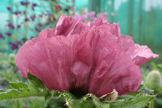 The Oriental poppies are out in all their devastating silk-ballgown gorgeousness. First off was the un-named double crimson in the scree garden in perfect partnership with the silvery Pulsatilla seedheads.