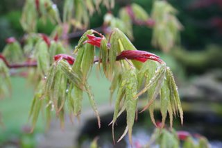 The green leaves of Acer 'Osakazuki' emerging from their ruby leaf casings. Plants offer beauty in so many more ways than just flowers