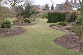 Pete and I have redesigned some of the borders between us, widening and rounding with hoses snaking down the garden as the inclination took us. There were too many straight lines before for my liking. Here's the before and after.... Green Thumb aerated and scarified the lawn last week too, which is why the lawn looks a bit sparse. I badly need a good downpour now to kick it into life - we've had no real rain for two weeks.