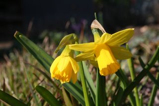Two dry days meant two good sessions outdoors. Still very cool, but the sun came out long enough to encourage a few flowers to open. Below is Tete-a-tete making its first foray into the open.