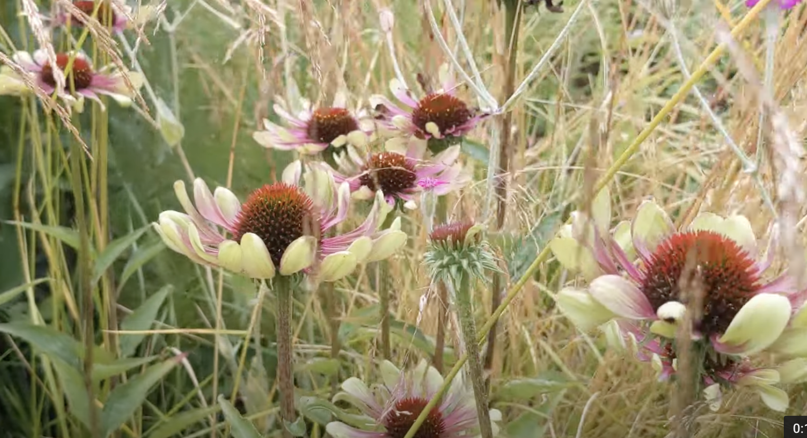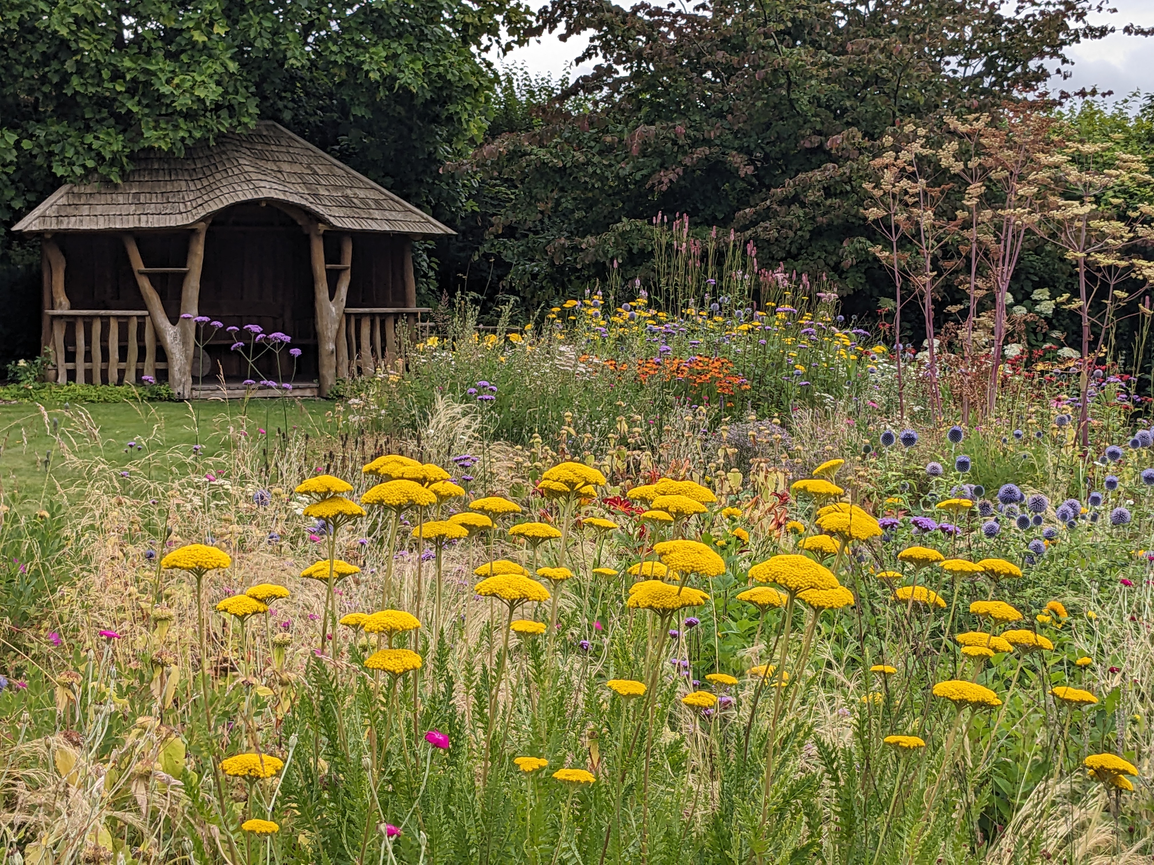 We love to let our plants nestle into one another, like this Echinacea ‘Green Twister’ with Deschampsia cespitosa, above. This permissive, intermingling approach means our borders look relaxed, but never disorderly, we hope. It’s a fine line though, and we never have quite enough maintenance time, so there can be a long lag between merely cropping a weak area out of photos and realising it has gone beyond recovery. And then there’s a much longer delay, often years, before we find the time and energy to clear it out and start again.