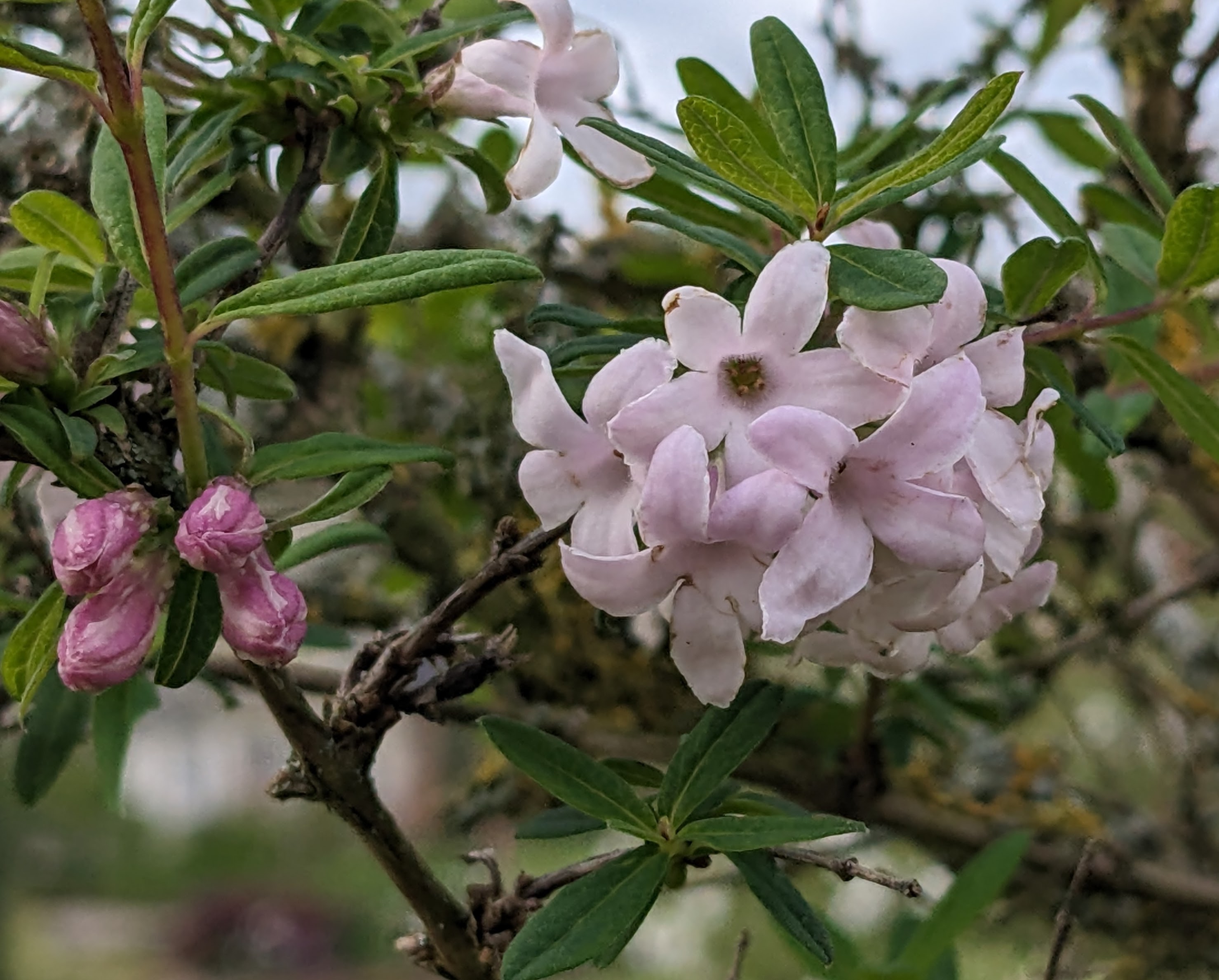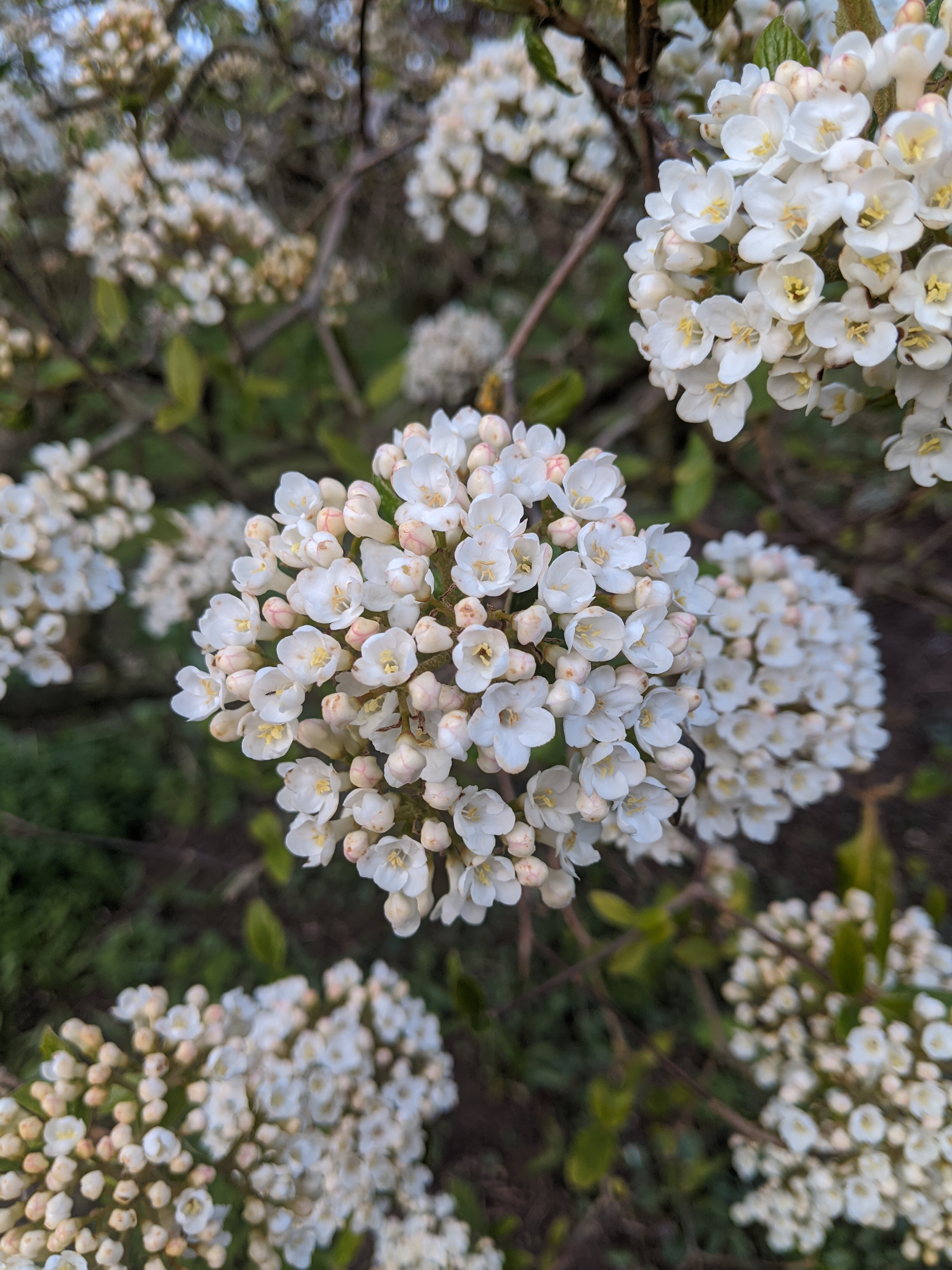 First, we need to finish clearing a large bed that we started emptying last year and abandoned in March. At one end is a glorious Viburnum carlesii underplanted with Aster divaricata and Tulipa sprengeri. We’ve left them in, along with a fine crab apple. At the other end is an elderly Lonicera syringantha shrub, which is sweetly scented in early April and a scrappy looking thing for the rest of the year. It also had a hawthorn self-seeded into its centre and a bramble running under it.