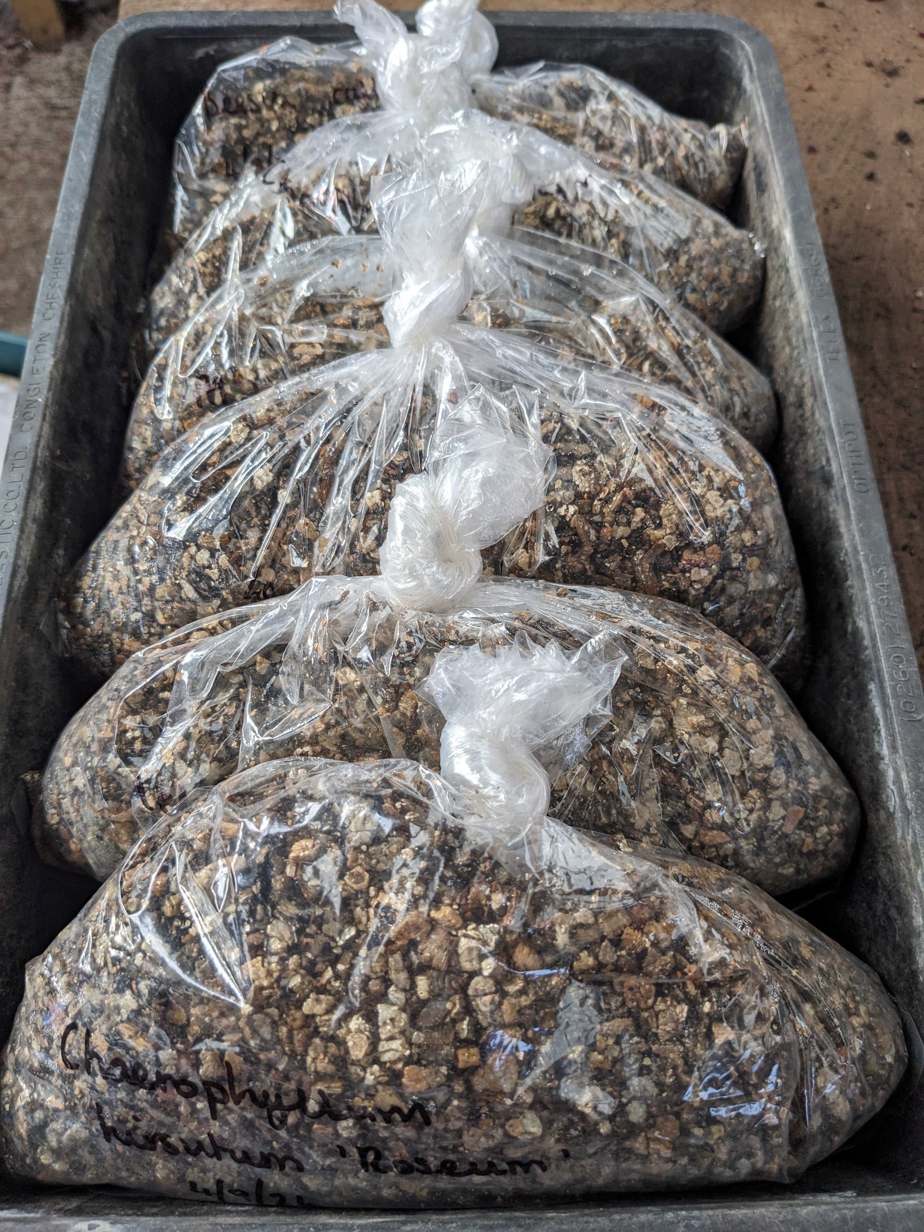 In February, we’ll take out all the bags, spread the seed and vermiculite mixture onto trays, water them, put them somewhere cool and frost free and leave them to it. If they’ve been chilled for long enough they’ll germinate as the days lengthen and temperatures rise.