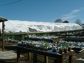 Meanwhile, back in the north west, the snow had fallen the previous night, leaving the nursery and garden decked out in white in the spring sunshine. With thanks to Tracey for the pictures....