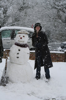 With heavy flakes settling beautifully, my parents' front garden was soon adorned with a very fine snowman indeed, created by our resident snow queen Holly with help from Hazel and Dave. Somehow it felt right to leave a snowy golden wedding present in the garden...