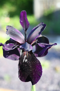 We have two large polytunnels which are closed to customers, mainly because they contain a depressingly large number of plants (about 5,000) which are the last of those we inherited with the place and haven't yet had time to clean up. But we are watering them regularly and every few days something wonderful emerges from a pot, completely unscathed by its brush with weeds and neglect. Here's this week's top recovery, Iris chrysographes - possibly 'Black Knight'.