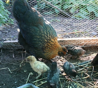 HK, the 5 remaining chicks are doing fine. Of the original 21 eggs, the hen pushed out 8 leaving 13. 9 hatched out and 4 chicks died on the first day - they found their way out into the run and failed to find their way back before succumbing to the cold. We blocked up the chick hole until they were 10 days old, much to the bemusement of the hen who kept stepping over the threshold and pecking away at food, quite unable to figure out why the chicks didn't follow. Chickens aren't bright, are they?