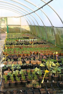 We took delivery of a gorgeous batch of fruit trees and decorative trees this morning. The nursery has gained some instant height and prettiness. Some of the apple trees are in blossom - too early of course, but they must have been grown on inside. Just have to hope we don't get a frost in the next few days as I can't put them under cover.