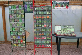 Our organic veg, herb and wildflower seed stands are up, along with some helpful posters courtesy of the RHS and a collection of organic fertilisers and controls. I think we are ready to talk veg.