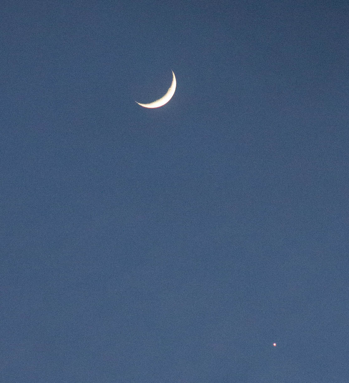 Last night I took my trusty SLR out of its bag, polished the lens and charged the battery. I took it outside and took a picture of the Moon and Jupiter. It’s not a great shot, but it’s better than my phone camera can do.
