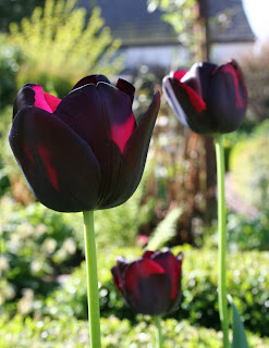 And one picture just for the beauty of it. The low sun makes Queen of Night look like a two-tone tulip.