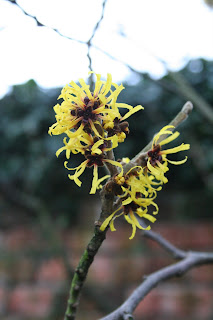Three of my four best winter scented plants are in full flower now. If the wind would only die down a down a bit, they would be softly filling the garden with their perfume. As it is, any scent they are giving off is being blown across to the east coast. Yesterday we notched up a two year record high gust of wind for this garden. Only 38mph, so not exactly hurricane force, but then the anomometer is only 10 feet off the ground and behind some trees so it significantly under-records.