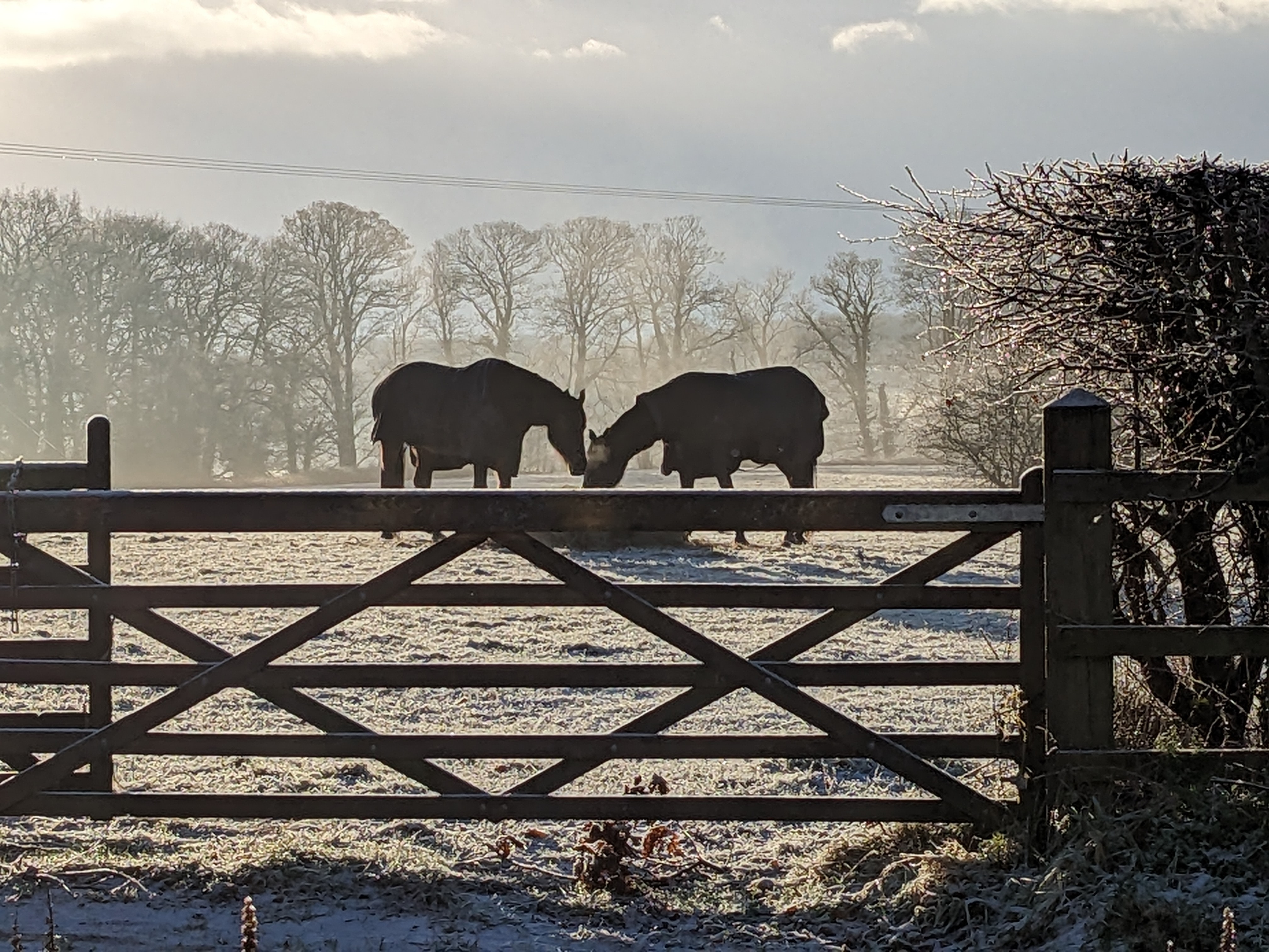 Right, off my soapbox. Here’s a gorgeous picture of the horses in the field opposite taken this morning from my front door. Yes, lucky me :-)