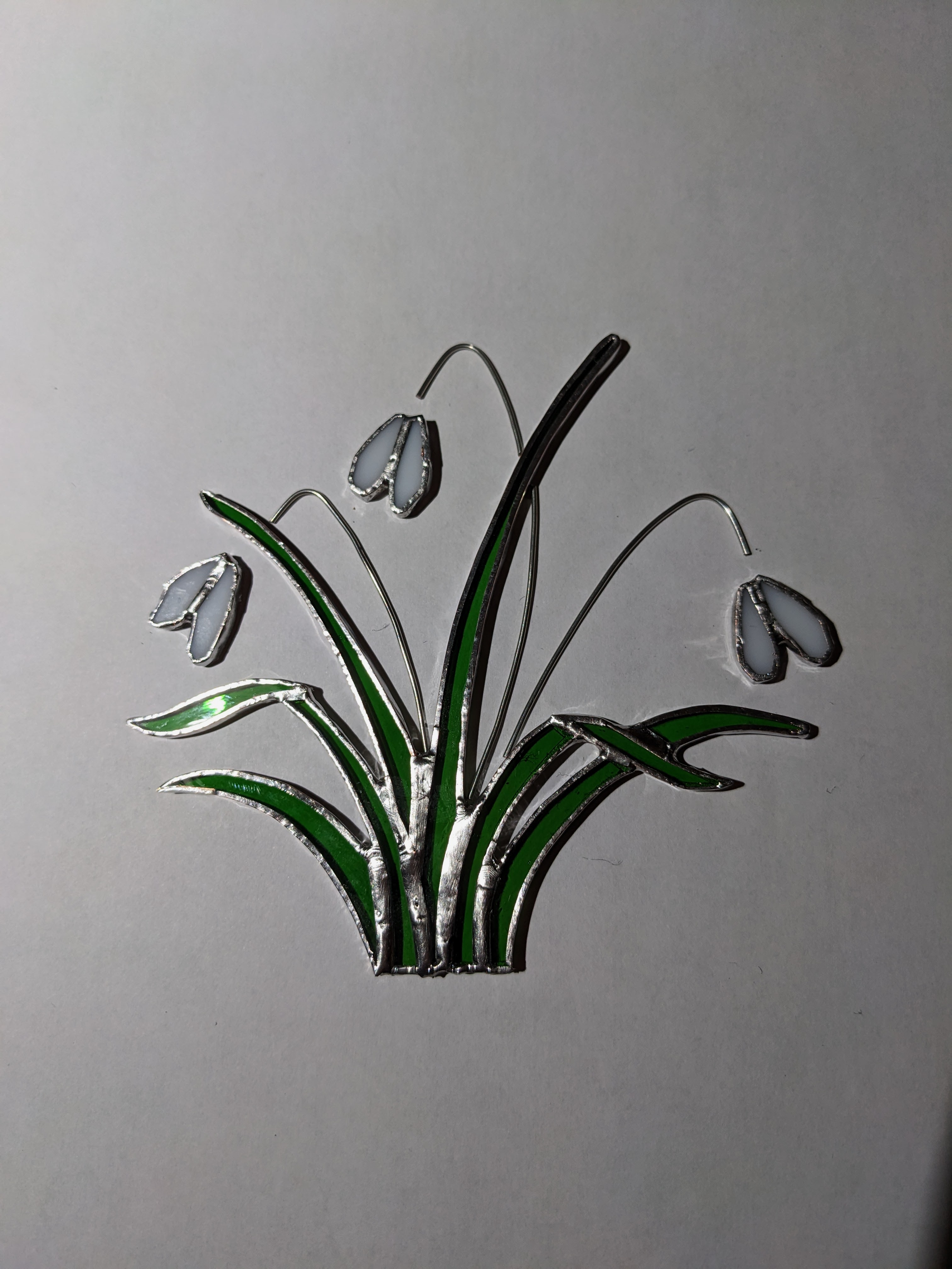 I don’t mind - I lack the metabolism for working in low temperatures, and there’s plenty of time to catch up outside before spring. Indoors, the never-decreasing pile of paperwork beckons, but I am easily distracted and there is always something more interesting to do. I’ve been messing around with stained glass over winter, making bits and pieces to give away. We made a running fox for a young friend last week and this week I’ve been trying to make snowdrops. It is all about light, of course, which January lacks, so perhaps that’s the pull of it.